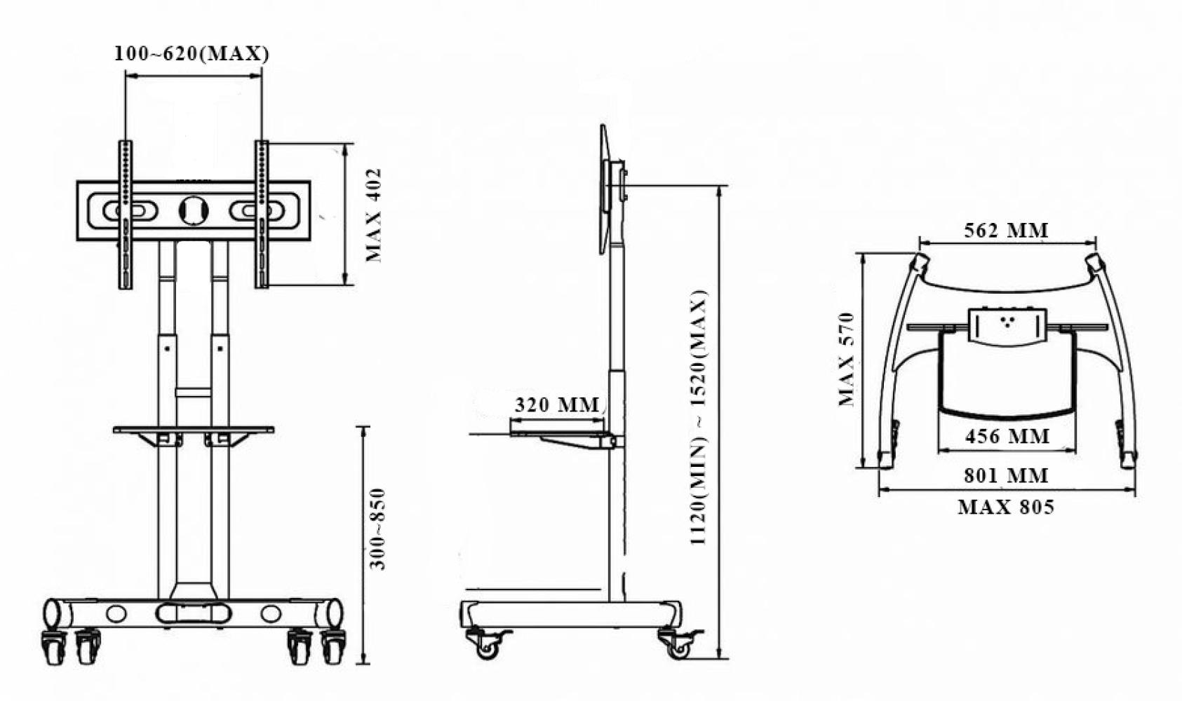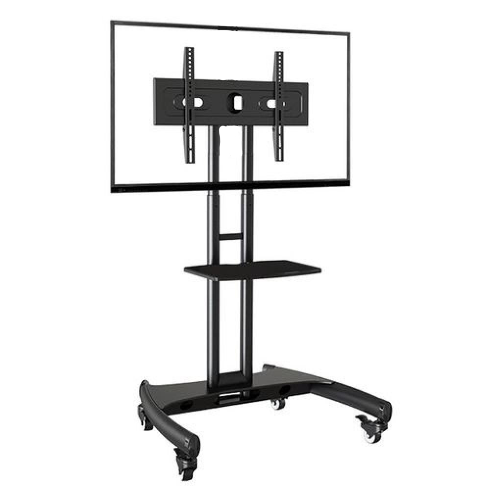 Напольная мобильная медиостойка, на подвижном шасси с фиксирующим механизмом колес. Предназначена для телевизоров, мониторов, дисплеев и интерактивных досок от 32" до 70", VESA max 600x400, весом до 45,5 кг. Стойка снабжена полкой для AV компонентов. Очень прочная и устойчивая конструкция имеет функцию изменения уровня высоты, презентабельный внешний вид, большой ресурс. Эта стойка - конструктор, т.е. рассчитана на многоразовые циклы сборки/разборки (для компактного хранения в период не надобности)..