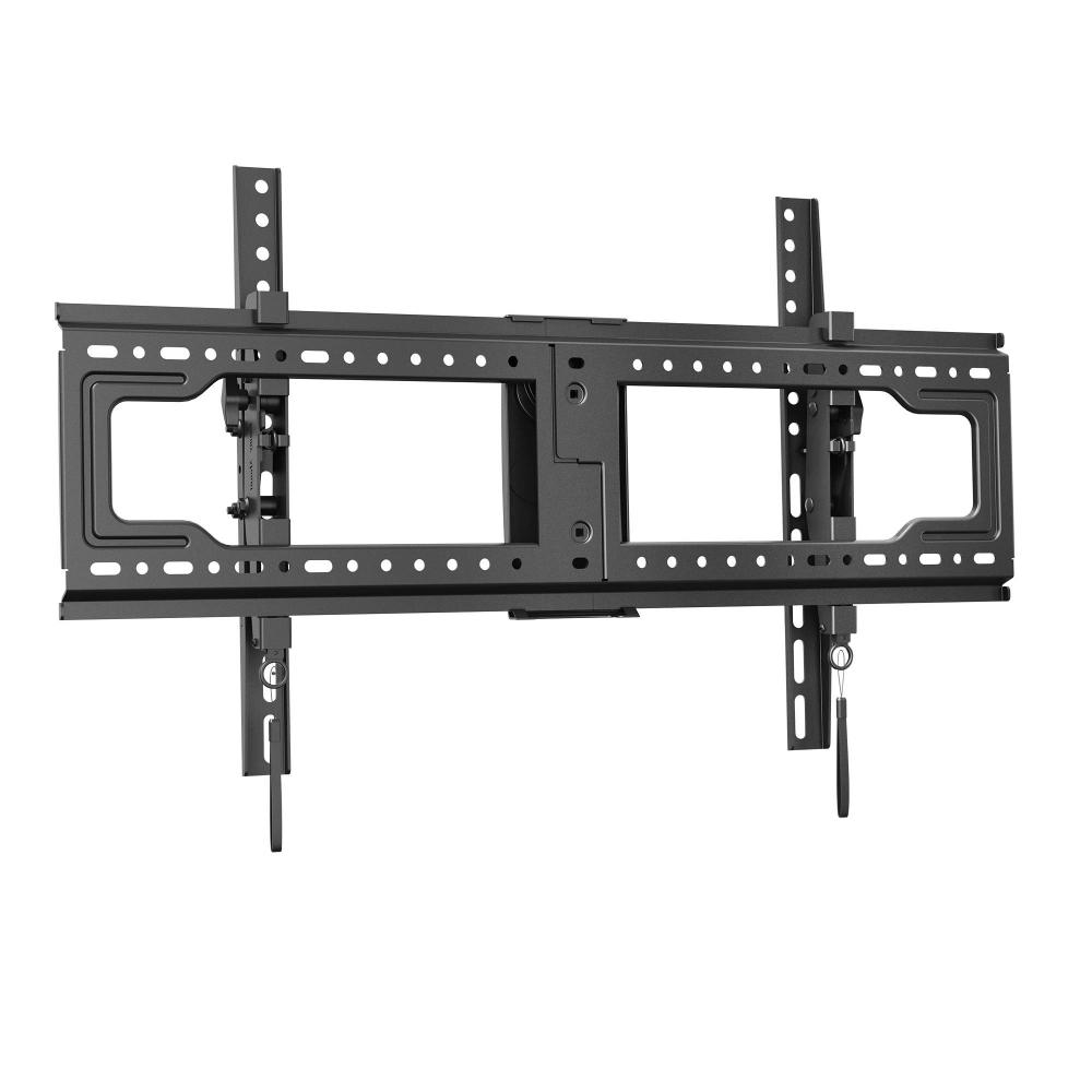 Для надежного закрепления кронштейна к опорной поверхности монтажная планка перфорирована достаточным количеством монтажных отверстий и снабжена стрелочным индикатором горизонтального положения. В комплекте с кронштейном имеются: качественный анкерный материал для твердых типов стен, также три типа размеров болтов для ТВ панели и компенсационные проставки для возможности увеличения дистанции между стеной и панелью.